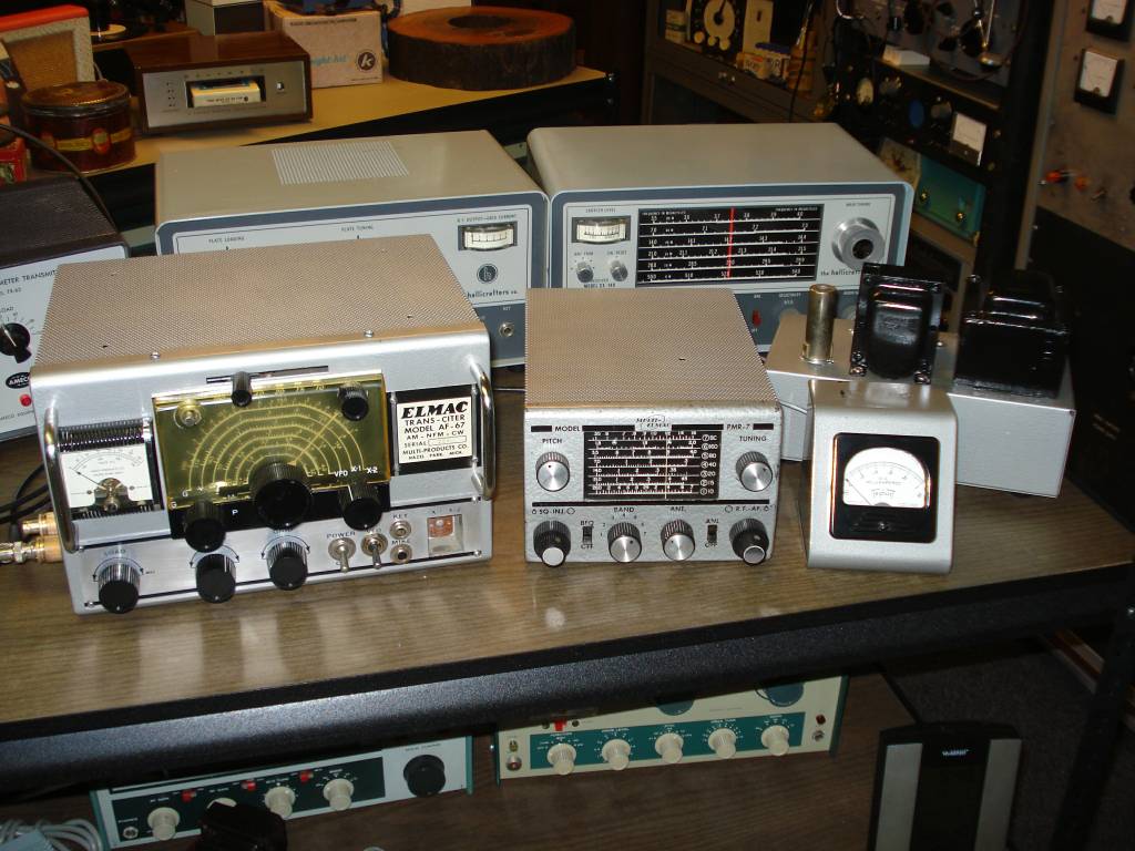 Fast forward to 1990 when I moved to a much larger home5 and had the means to start building a boat anchor collection. It would be awhile however until I again aquired a Multi-Elmac. In 2006 I started using Ebay to aquire some of the rigs of my past including the Knight T60 and Heath HR10, my first ham station. My interest in AM grew and I thought about the AF67 and PMR7 that I once had. My first Multi-Elmac purchase was a PMR6 from an ad in Electric Radio, Then I purchase another PMR6 on Ebay following by a PMR7 and an AF67. Then another AF67 and another and another. I purchased a total of six AF67's and my final purchase was an A54. I have restore the PMR6's, PMR7, one AF67 and the A54.